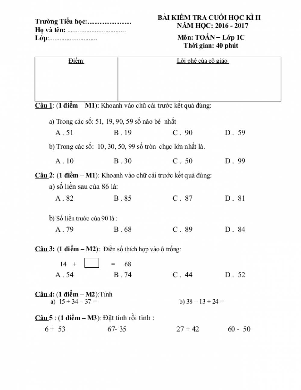 Để đồng hành cùng con trong chặng đường học vấn lâu dài, ba mẹ sẽ còn vất vả nhiều hơn nữa. Gia sư Bảo Châu thấu hiểu và xin tổng hợp một số bộ đề thi toán lớp 1. ĐỀ SỐ 1: ĐỀ SỐ 2 ĐỀ SỐ 3...