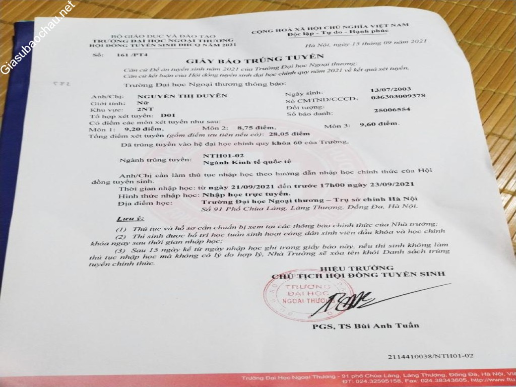 | Trường | ĐH Ngoại thương |