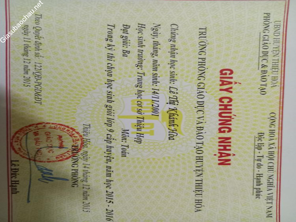 | Quê quán | Thiệu Hoá - Thanh Hóa |