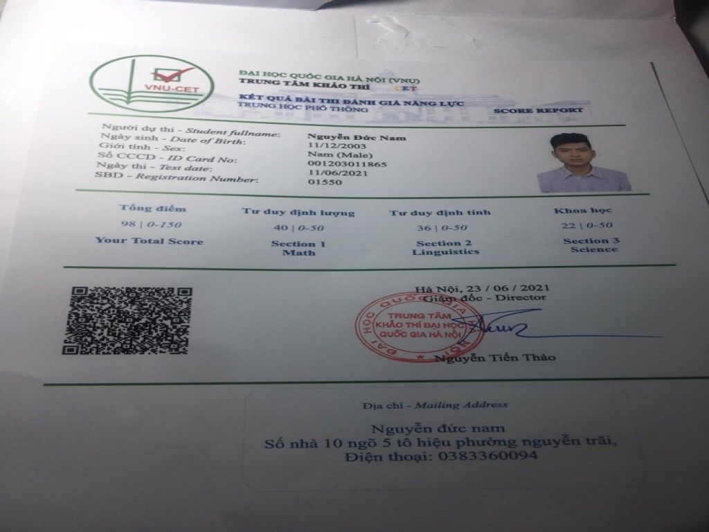| Trường | ĐH QGHN - ĐH Khoa học Tự nhiên |
