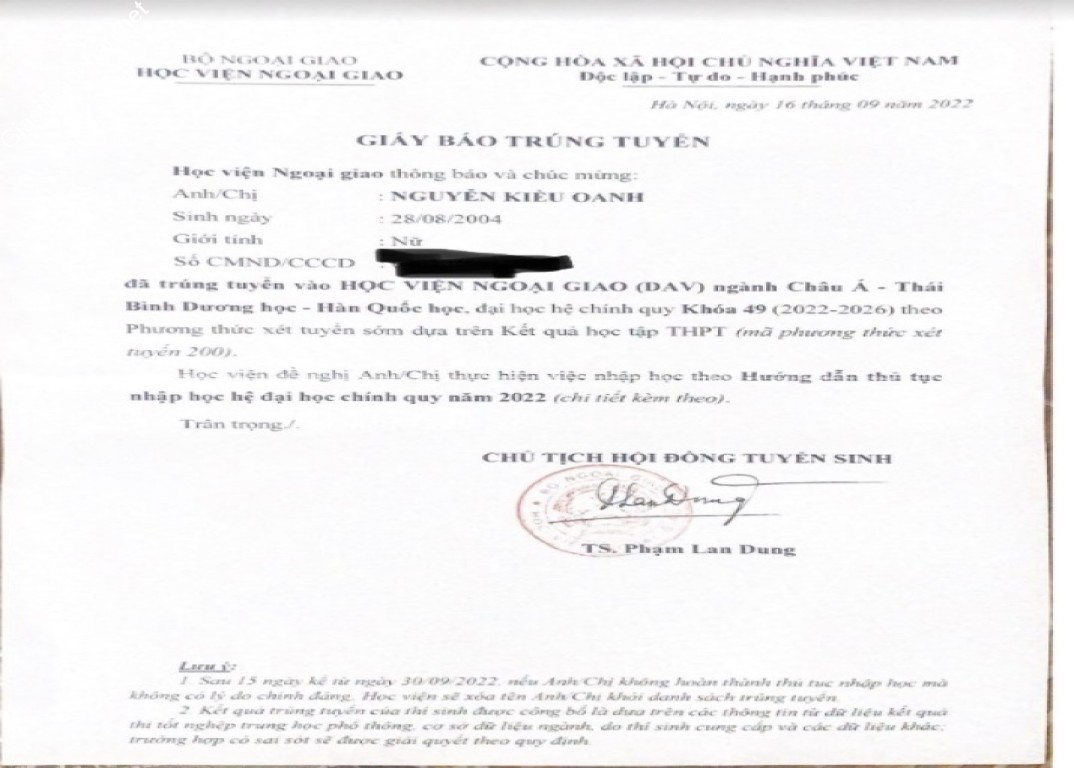 | Trường | HV Ngoại giao |
