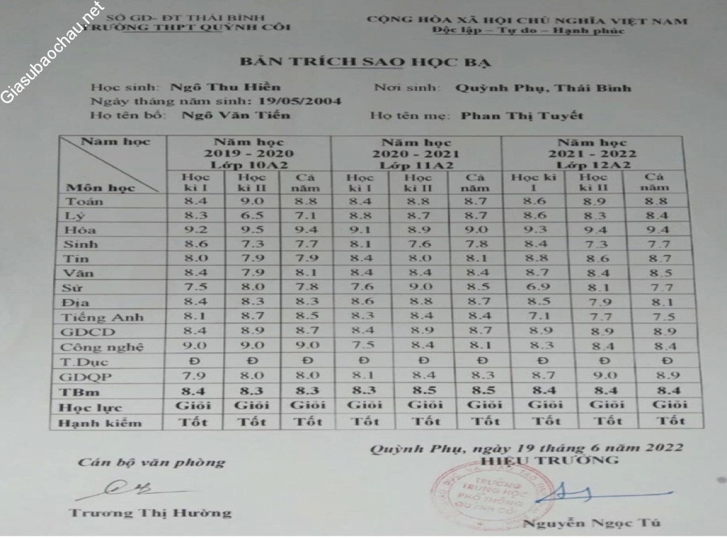 | Giới tính | Nữ |