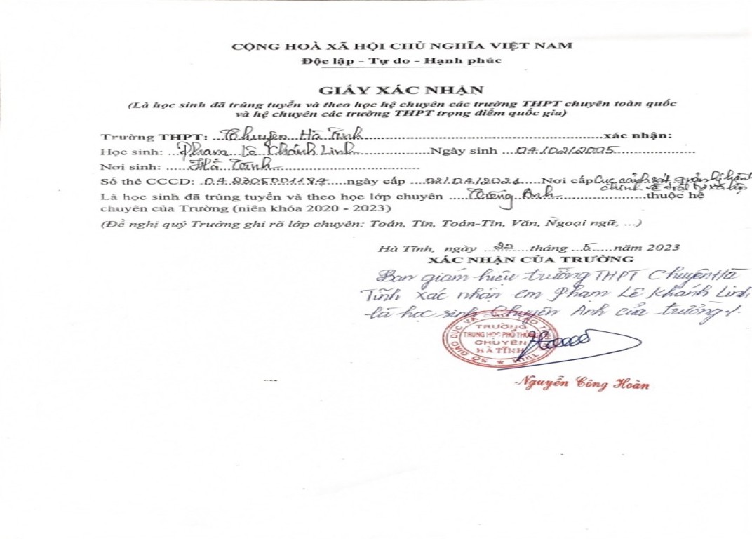 | Quê quán | TP. Hà Tĩnh - Hà Tĩnh |