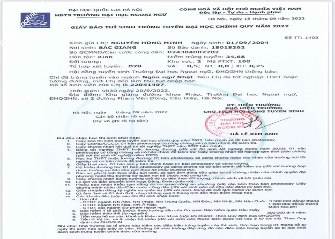 | Trường | ĐH QGHN - ĐH Ngoại ngữ |