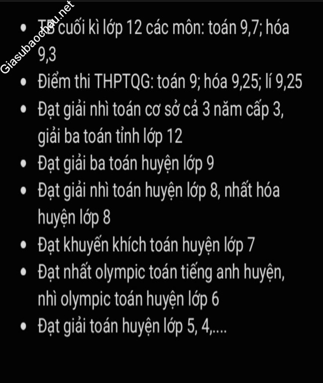 Danh sách TOP những gia sư được các phụ huynh học sinh đánh giá cao nhất.