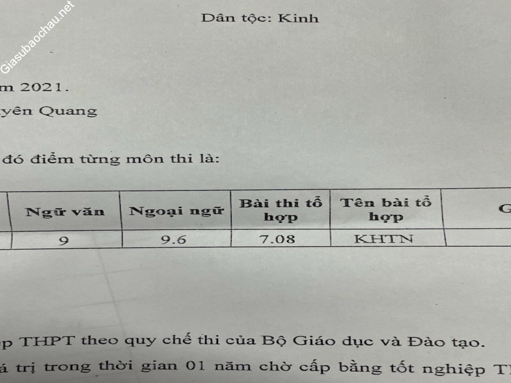 Quý phụ huynh vui lòng xem kỹ thông tin gia sư xem có phù hợp không rồi gọi tới một trong các số: 0966.042.043 (Cô Bảo Châu) - 0966.713.716 (Cô Lệ) của Trung tâm để thông báo việc lựa chọn gia sư này. Trung tâm sẽ gọi điện phỏng vấn gia sư thêm một lần nữa. Nếu gia sư đáp ứng yêu cầu và đồng ý dạy, Trung tâm sẽ gửi số điện thoại của Quý phụ huynh cho gia sư để hai bên trao đổi trực tiếp với nhau.