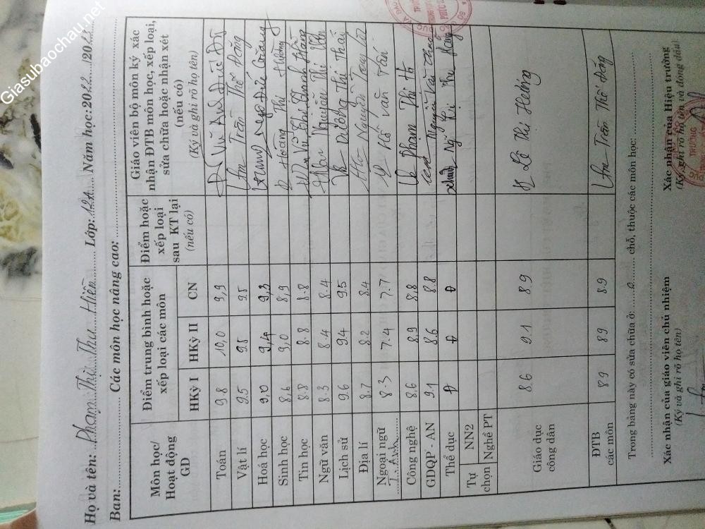Danh sách TOP những gia sư được các phụ huynh học sinh đánh giá cao nhất.