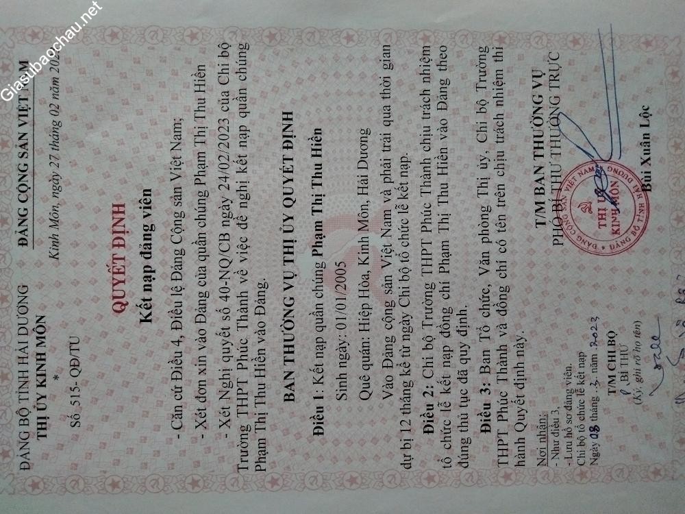 | Quê quán | Kinh Môn - Hải Dương |