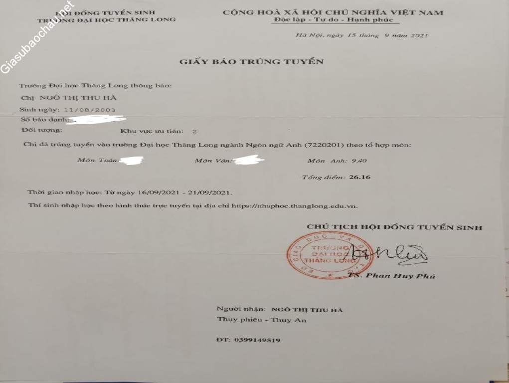 Quý phụ huynh vui lòng xem kỹ thông tin gia sư xem có phù hợp không rồi gọi tới một trong các số: 0966.042.043 (Cô Bảo Châu) - 0966.713.716 (Cô Lệ) của Trung tâm để thông báo việc lựa chọn gia sư này. Trung tâm sẽ gọi điện phỏng vấn gia sư thêm một lần nữa. Nếu gia sư đáp ứng yêu cầu và đồng ý dạy, Trung tâm sẽ gửi số điện thoại của Quý phụ huynh cho gia sư để hai bên trao đổi trực tiếp với nhau.