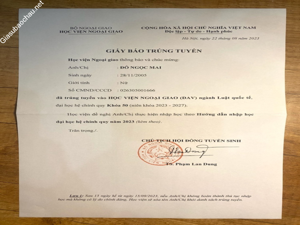 | Trường | HV Ngoại giao |