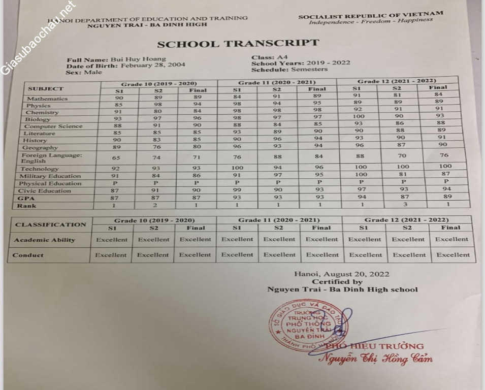Danh sách TOP những gia sư được các phụ huynh học sinh đánh giá cao nhất.