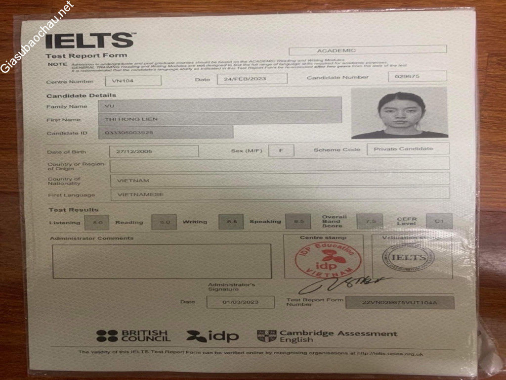 | Giới tính | Nữ |