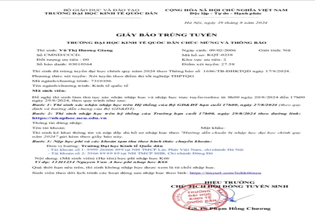 Mình tên là Vũ Thị Hương Giang, mình đến từ Hải Phòng. Hiện tại mình đang là sinh viên năm nhất chuyên ngành Kinh tế quốc tế của Trường ĐH Kinh tế quốc dân.
