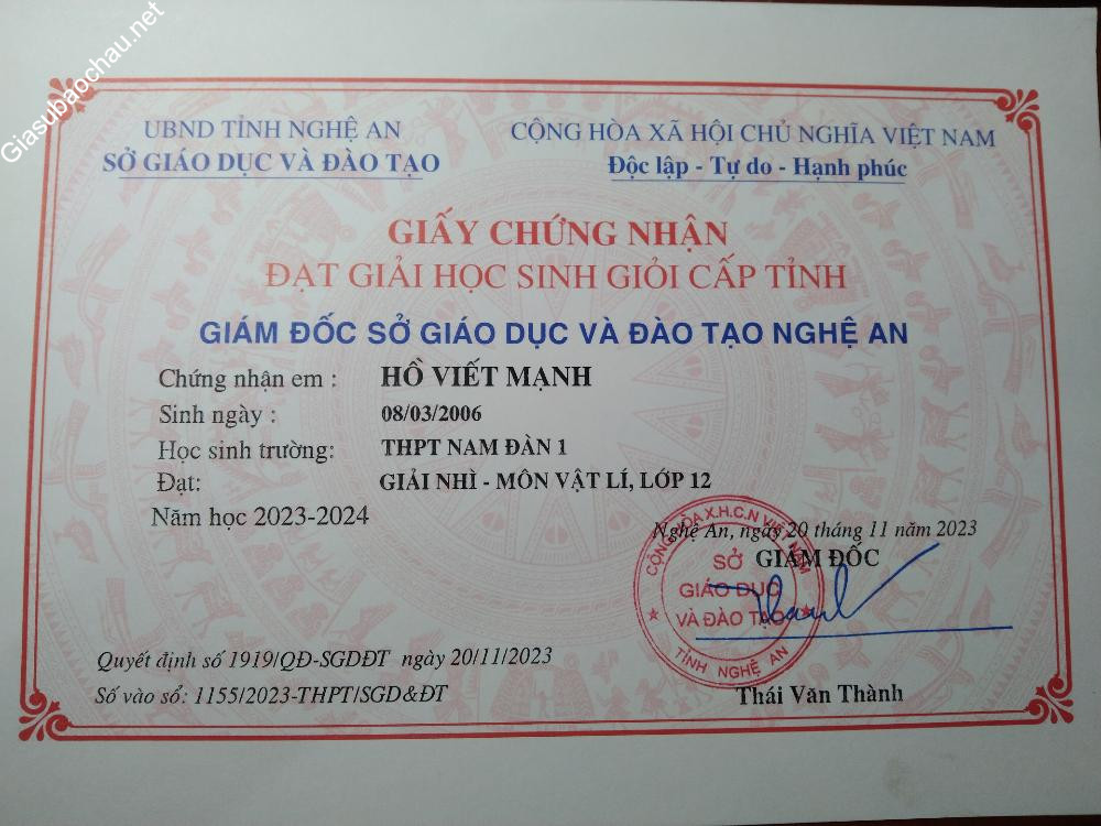 Quý phụ huynh vui lòng xem kỹ thông tin gia sư xem có phù hợp không rồi gọi tới một trong các số: 0966.042.043 (Cô Bảo Châu) - 0966.713.716 (Cô Lệ) của Trung tâm để thông báo việc lựa chọn gia sư này. Trung tâm sẽ gọi điện phỏng vấn gia sư thêm một lần nữa. Nếu gia sư đáp ứng yêu cầu và đồng ý dạy, Trung tâm sẽ gửi số điện thoại của Quý phụ huynh cho gia sư để hai bên trao đổi trực tiếp với nhau.