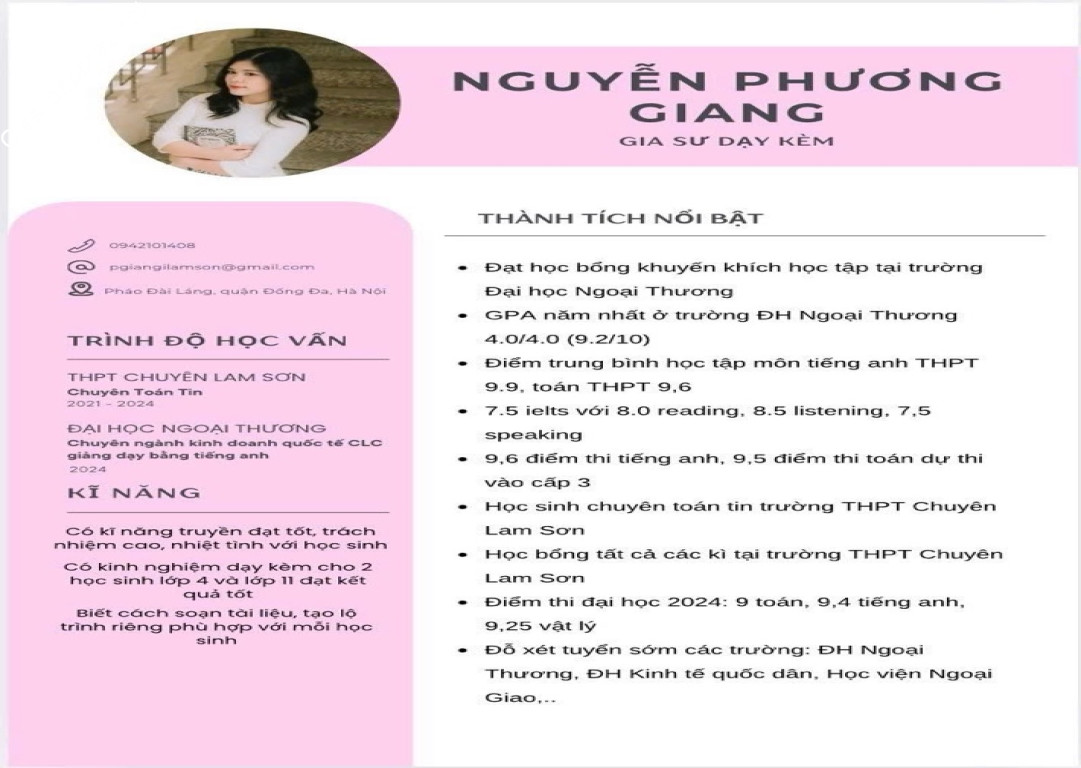 Danh sách TOP những gia sư được các phụ huynh học sinh đánh giá cao nhất.