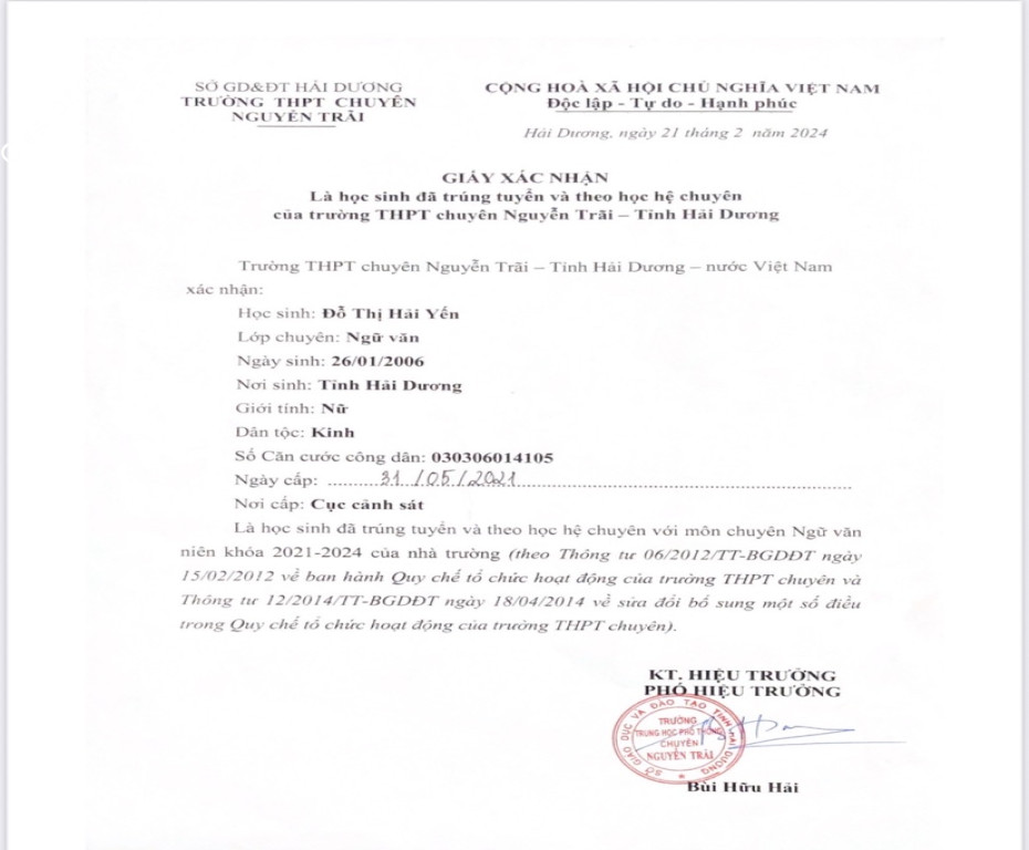 | Quê quán | TP. Hải Dương - Hải Dương |