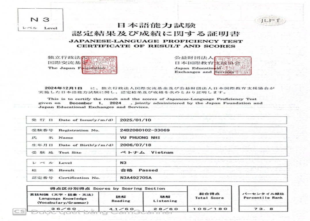 | Khoa | Tiếng Nhật Thương mại CLC |