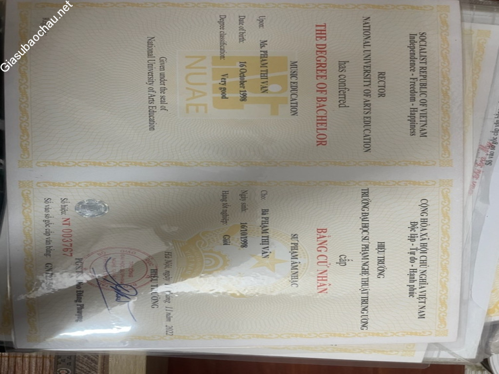 | Khoa | Sư phạm âm nhạc, thanh nhạc |