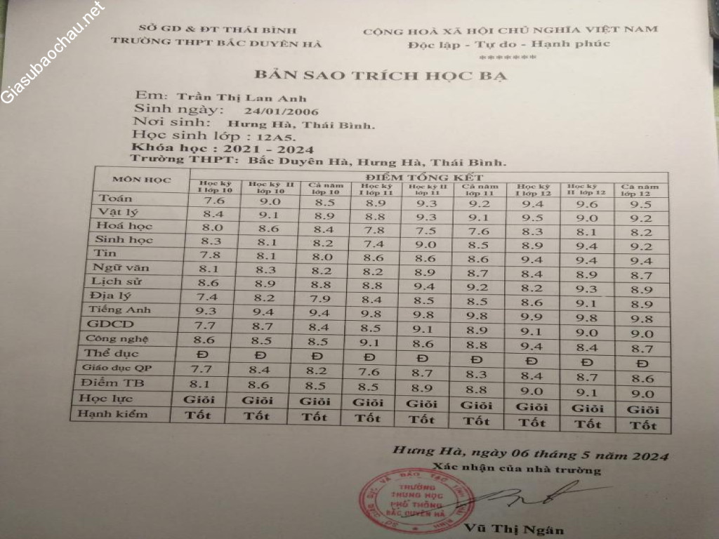 - Thành tích năm cấp 3 của mình: học lực giỏi, hạnh kiểm tốt. Đặc biệt CPA môn toán 9.5/10, môn tiếng Anh 9.8/10.