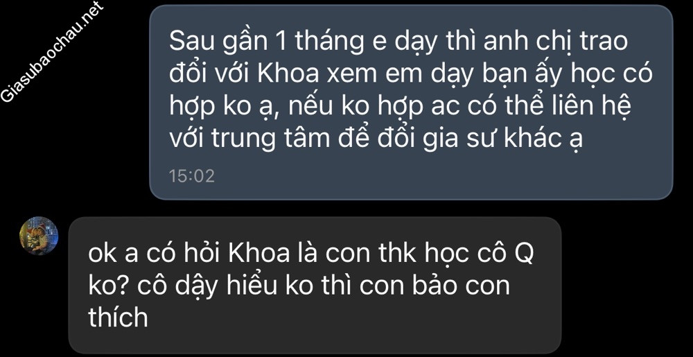 Quý phụ huynh vui lòng xem kỹ thông tin gia sư xem có phù hợp không rồi gọi tới một trong các số: 0966.713.716 (Cô Lệ) - 0966.042.043 (Cô Bảo Châu) của Trung tâm để thông báo việc lựa chọn gia sư này. Trung tâm sẽ gọi điện phỏng vấn gia sư thêm một lần nữa. Nếu gia sư đáp ứng yêu cầu và đồng ý dạy, Trung tâm sẽ gửi số điện thoại của Quý phụ huynh cho gia sư để hai bên trao đổi trực tiếp với nhau.