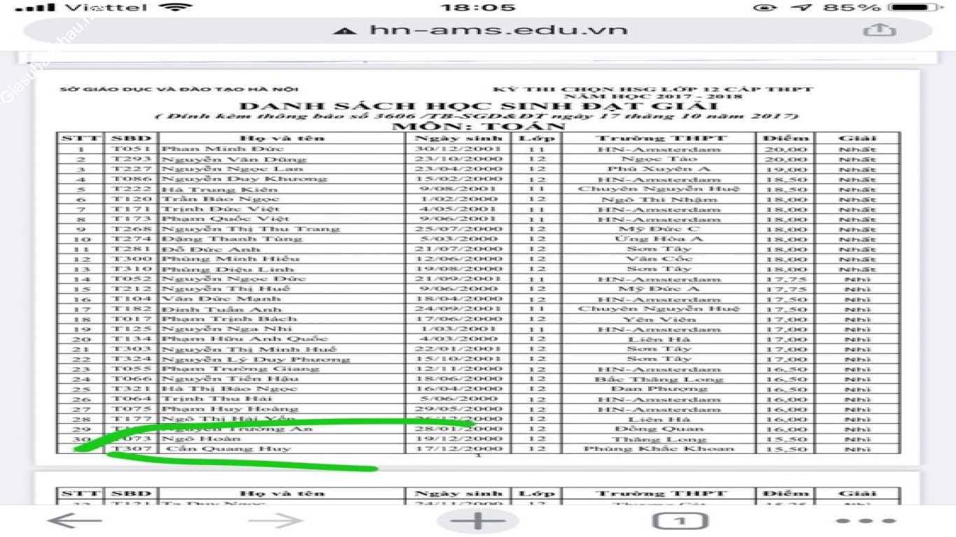 Danh sách TOP những gia sư được các phụ huynh học sinh đánh giá cao nhất.