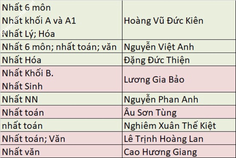Danh sách TOP những gia sư được các phụ huynh học sinh đánh giá cao nhất.
