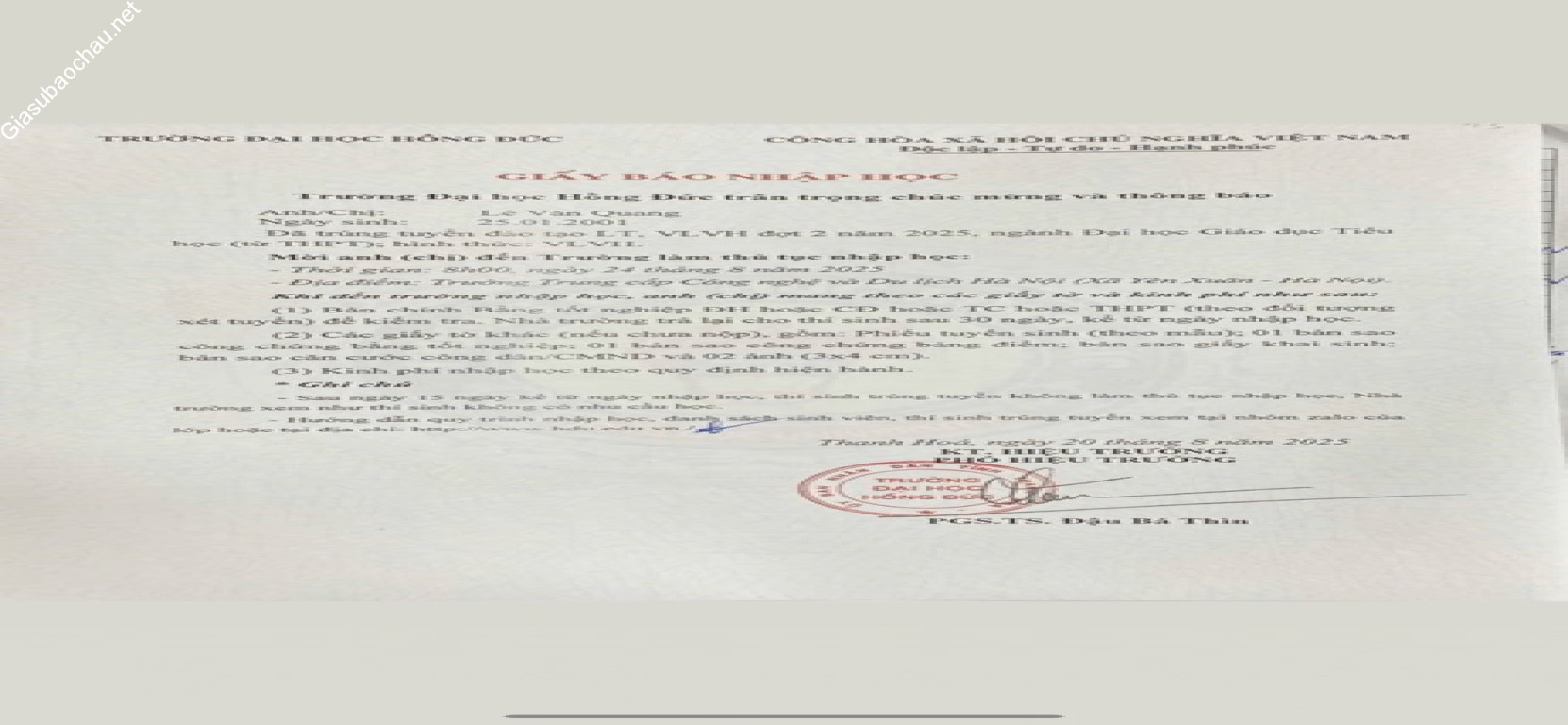 | Trường | Sư phạm Hồng Đức |