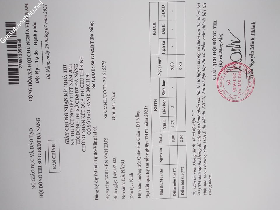 | Quê quán | Sơn Trà - Đà Nẵng |