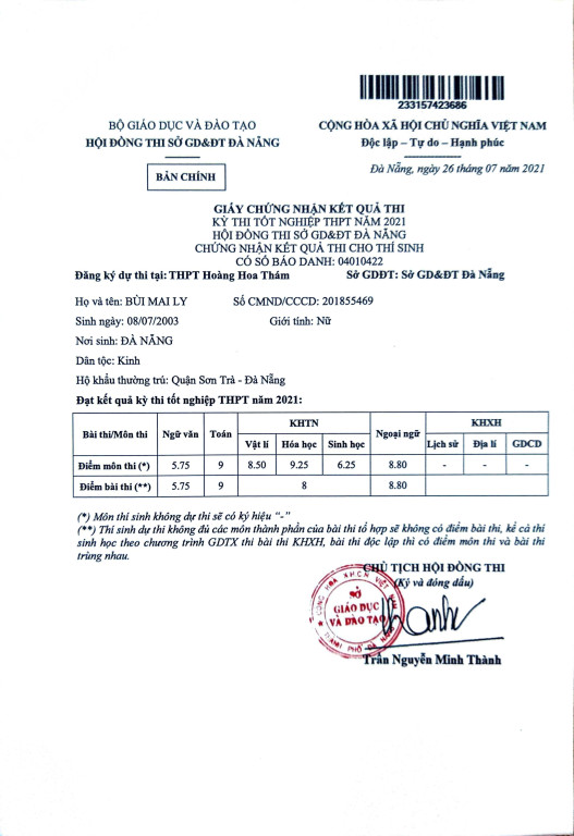 | Quê quán | Sơn Trà - Đà Nẵng |