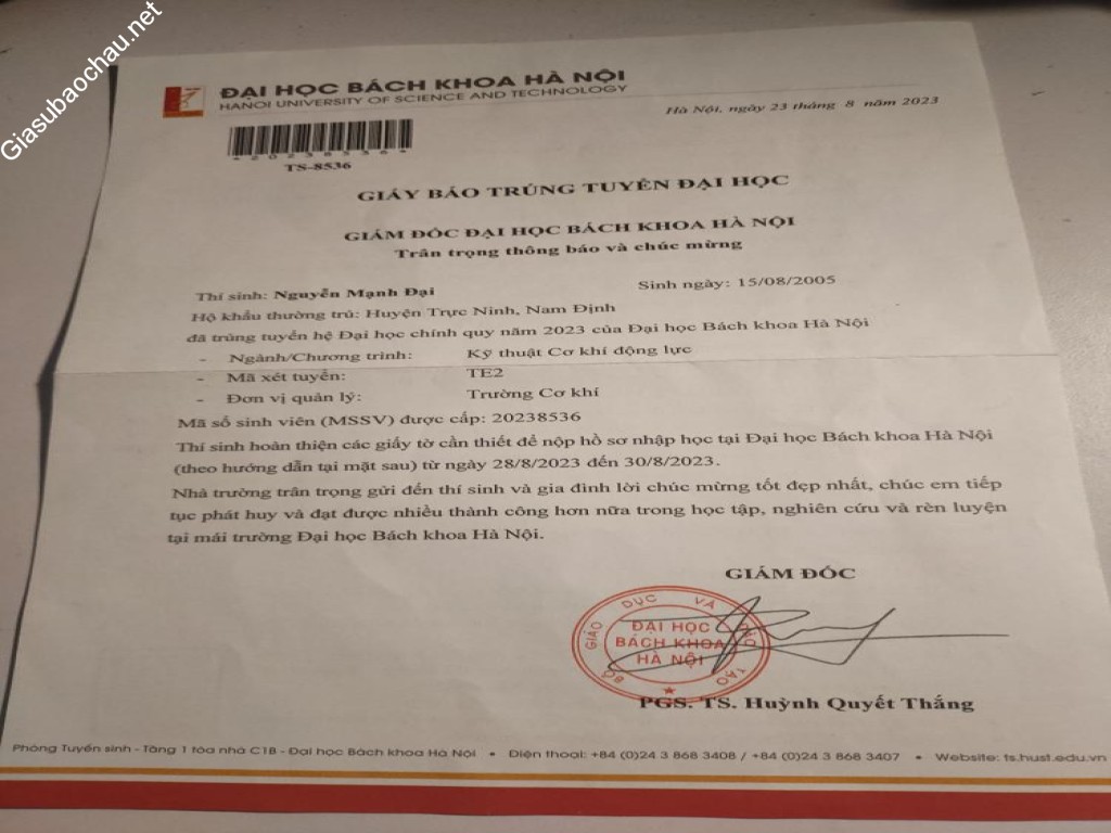 Quý phụ huynh vui lòng xem kỹ thông tin gia sư xem có phù hợp không rồi gọi tới một trong các số: 0966.713.716 (Cô Lệ) - 0966.042.043 (Cô Bảo Châu) của Trung tâm để thông báo việc lựa chọn gia sư này. Trung tâm sẽ gọi điện phỏng vấn gia sư thêm một lần nữa. Nếu gia sư đáp ứng yêu cầu và đồng ý dạy, Trung tâm sẽ gửi số điện thoại của Quý phụ huynh cho gia sư để hai bên trao đổi trực tiếp với nhau.