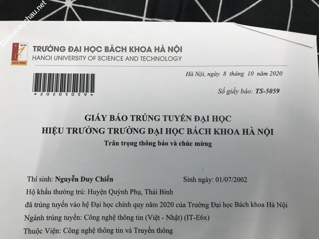 | Trường | ĐH Bách khoa Hà Nội |