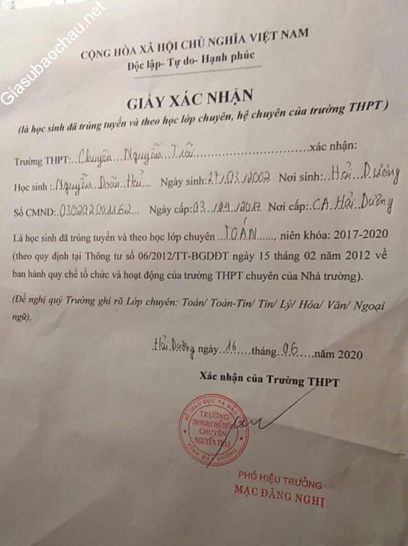 | Quê quán | TP. Hải Dương - Hải Dương |