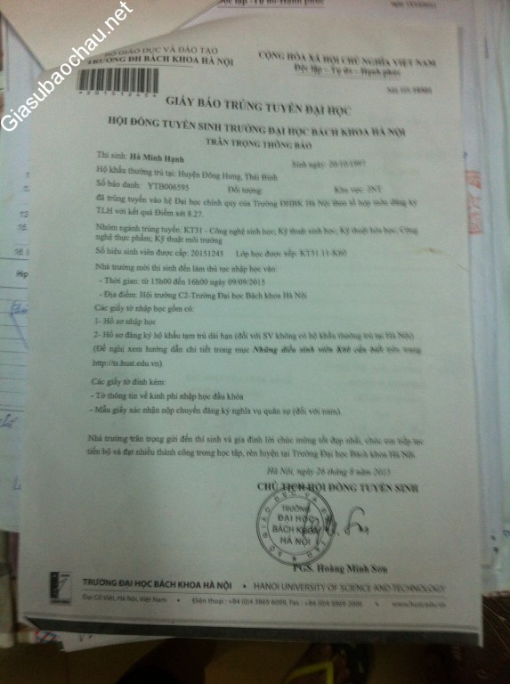 Quý phụ huynh vui lòng xem kỹ thông tin gia sư xem có phù hợp không rồi gọi tới một trong các số: 0966.042.043 (Cô Bảo Châu) - 0966.713.716 (Cô Lệ) của Trung tâm để thông báo việc lựa chọn gia sư này. Trung tâm sẽ gọi điện phỏng vấn gia sư thêm một lần nữa. Nếu gia sư đáp ứng yêu cầu và đồng ý dạy, Trung tâm sẽ gửi số điện thoại của Quý phụ huynh cho gia sư để hai bên trao đổi trực tiếp với nhau.