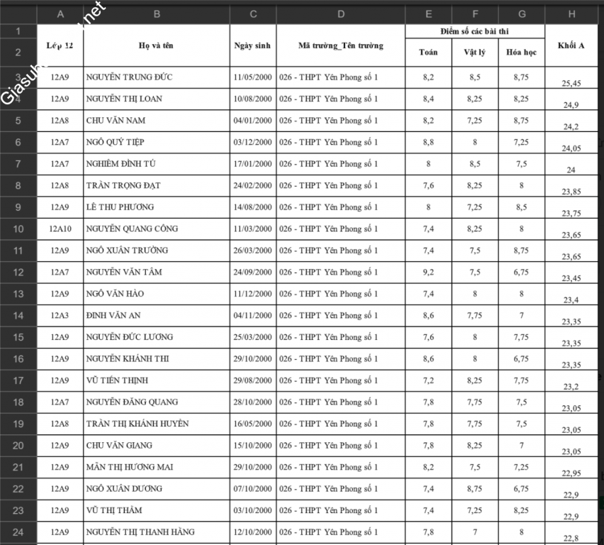 Danh sách TOP những gia sư được các phụ huynh học sinh đánh giá cao nhất.