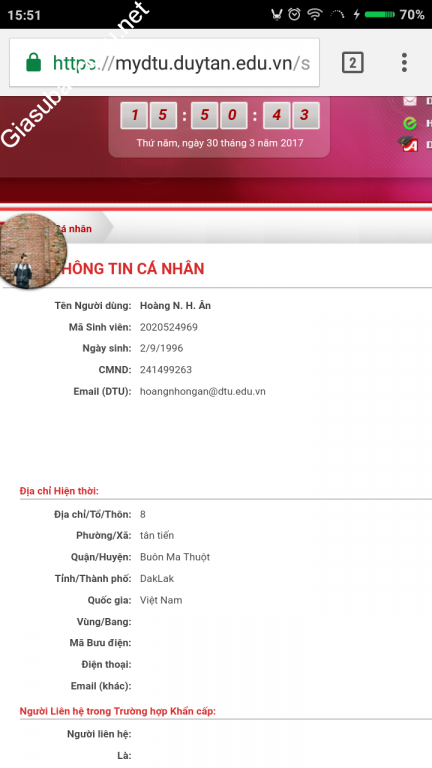 | Trường | ĐH Dân Lập Duy Tân |