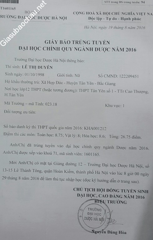 | Trường | ĐH Dược Hà Nội |