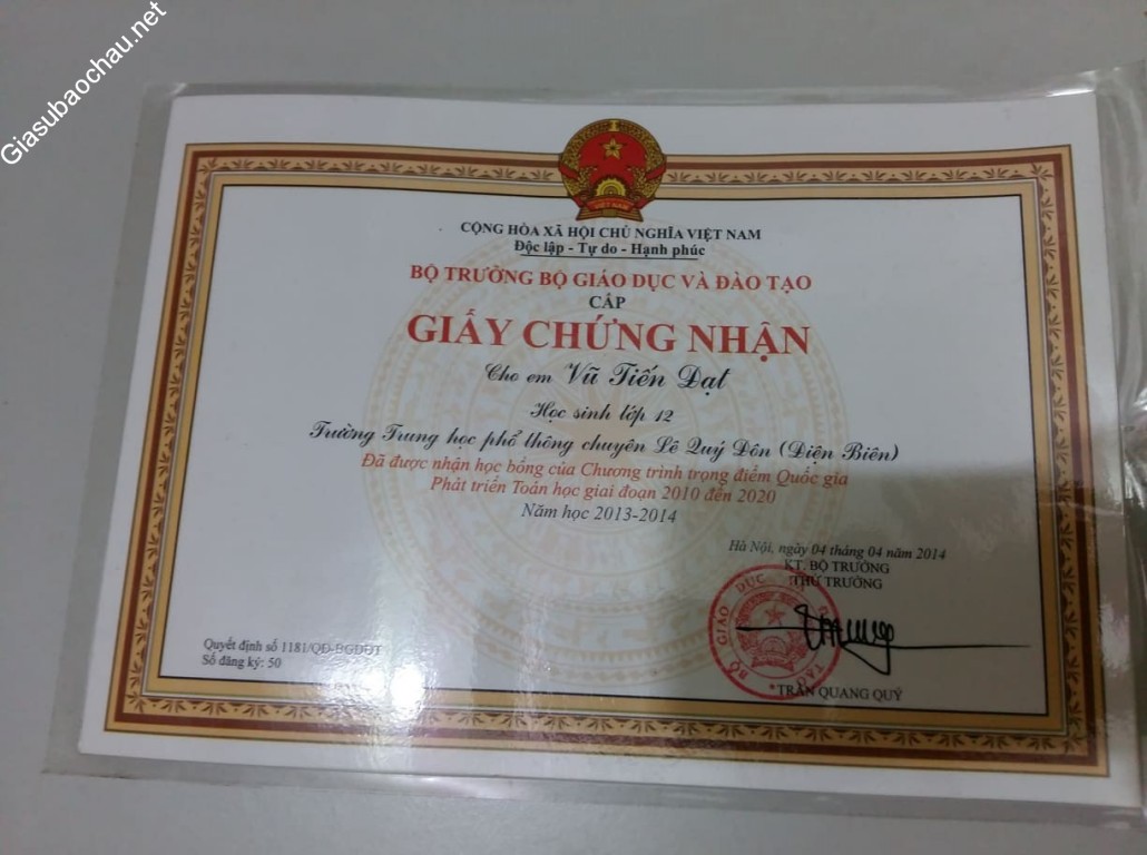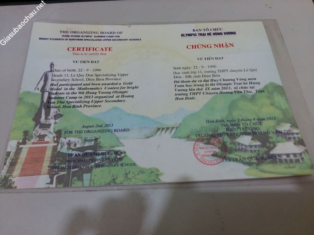 Cháu hiện đang là SV trường ĐH Dược HN, cựu học sinh lớp chuyên Toán, trường THPT Chuyên Lê Quý Đôn. Trong khoảng thời gian đi học, cháu đã đạt được một số thành tích và chứng chỉ như sau: