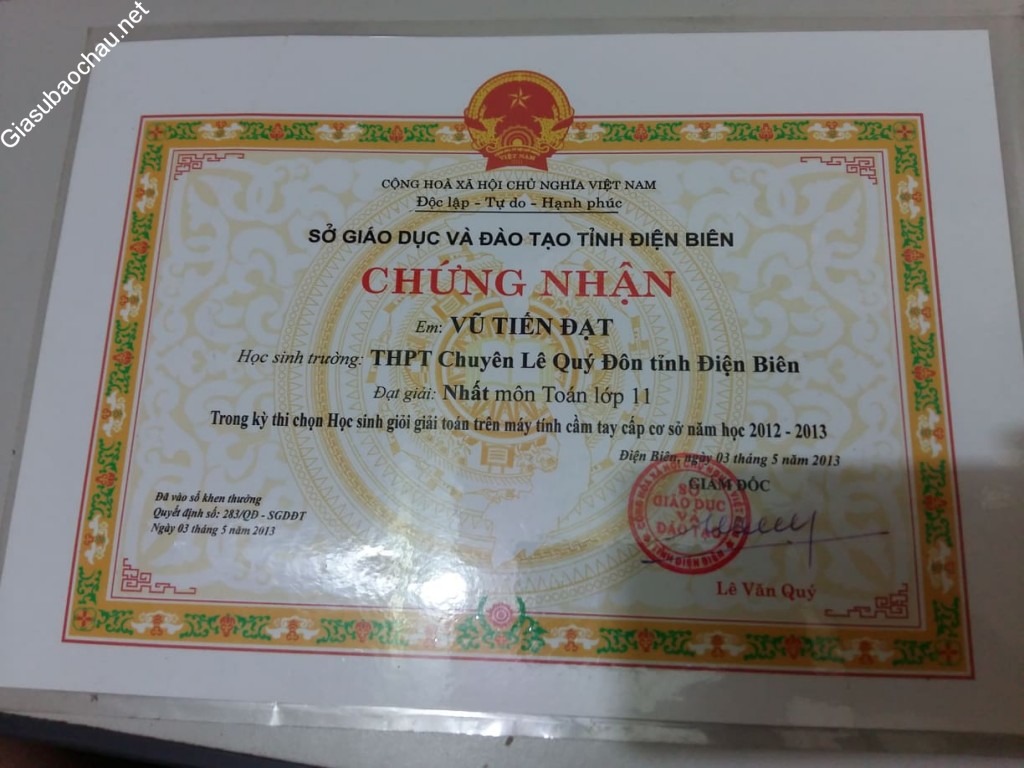 - Giải Nhất học sinh giỏi cấp tỉnh môn toán lớp 11.