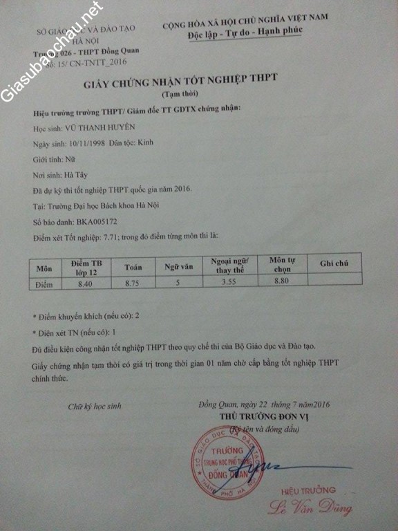 Quý phụ huynh vui lòng xem kỹ thông tin gia sư xem có phù hợp không rồi gọi tới một trong các số: 0966.042.043 (Cô Bảo Châu) - 0966.713.716 (Cô Lệ) của Trung tâm để thông báo việc lựa chọn gia sư này. Trung tâm sẽ gọi điện phỏng vấn gia sư thêm một lần nữa. Nếu gia sư đáp ứng yêu cầu và đồng ý dạy, Trung tâm sẽ gửi số điện thoại của Quý phụ huynh cho gia sư để hai bên trao đổi trực tiếp với nhau.