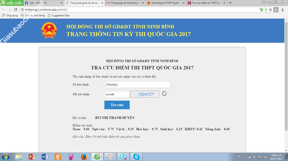 +Thi Đại học với số điểm : Toán 9.6, Lý :9.25, Hóa; 9.75