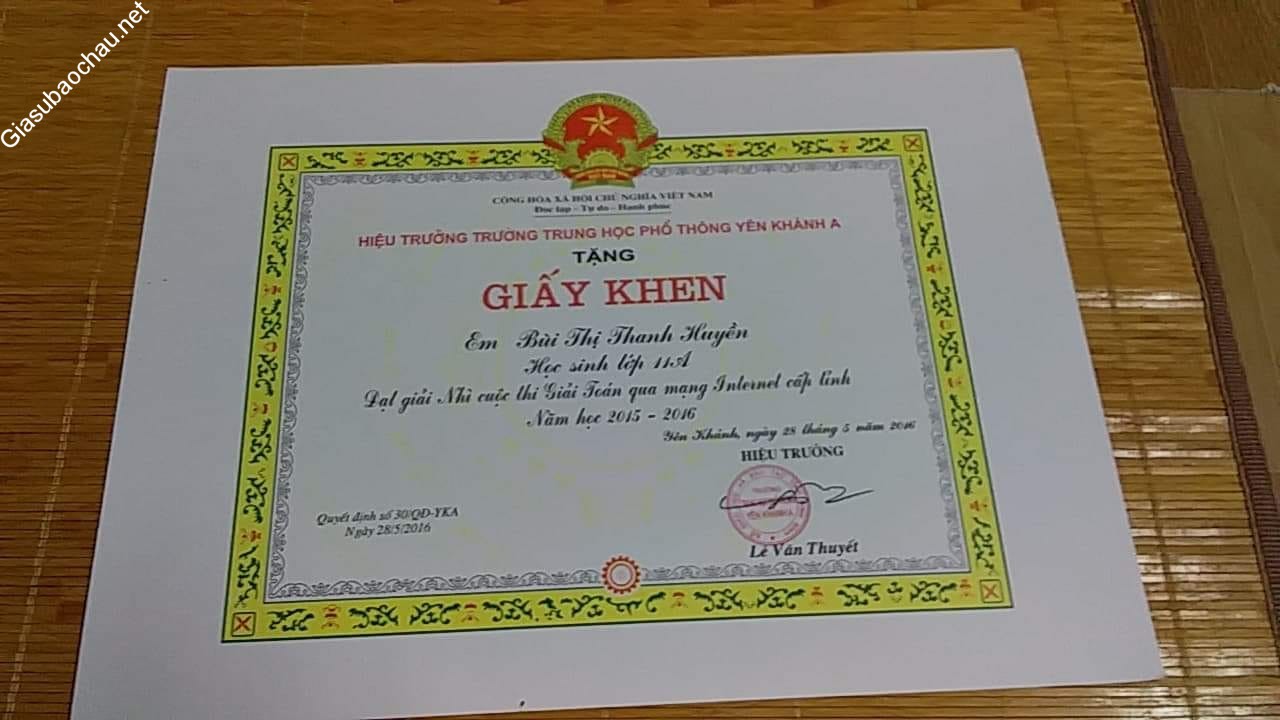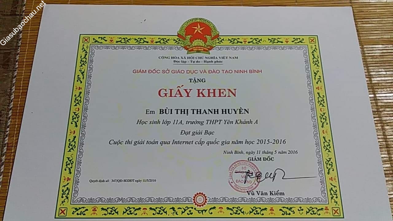 + Đạt giải Nhì cấp Quốc gia cuộc thi giải toán qua mạng lớp 11