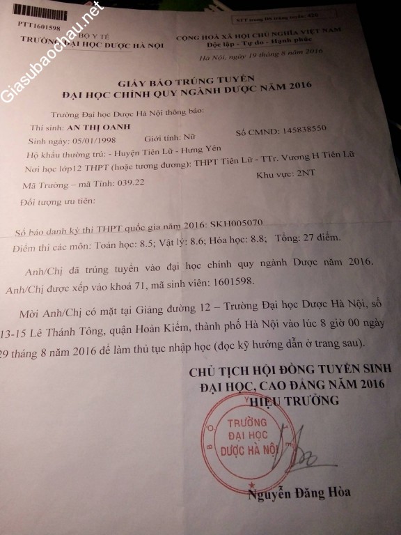 Chào mọi người! Em là Oanh, năm nay 21 tuổi.Em đang là sinh viên năm bốn trường đại học Dược Hà Nội. *Khả năng : 12 năm học liên tiếp em đều đạt được danh hiệu học sinh giỏi toàn diện và trong các kì thi học sinh giỏi em đã đạt giải nhì cấp huyện môn toán năm lớp 4,5,9 và tham gia kì thi học sinh giỏi tỉnh môn lí lớp 12. Em luôn ước mơ và khao khát được làm cô giáo nhưng điều kiện xã hội không cho phép. Em đã đạt được 27 điểm trong kì thi Đại Học vừa rồi với điểm các môn là toán: 8,5 , lí : 8,6 , hóa: 8,8.