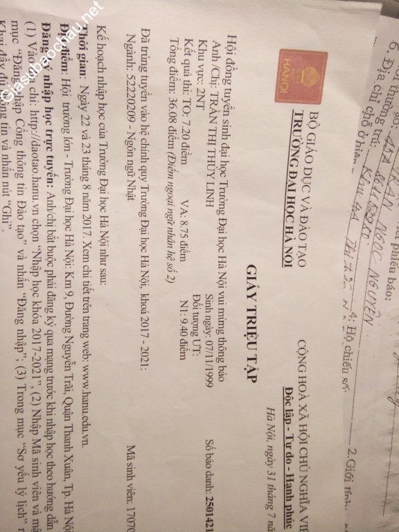 | Sống tại | Khu nhà D4, Đại học Hà Nội |