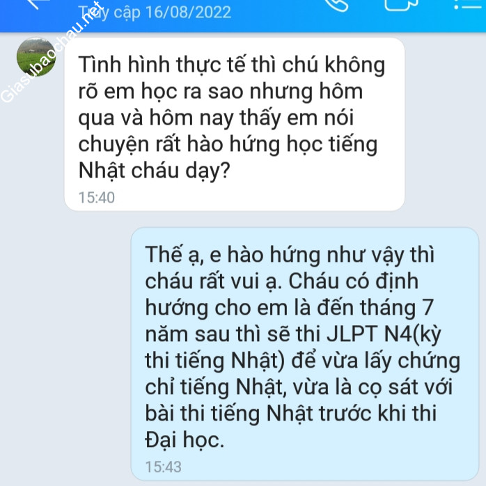 Quý phụ huynh vui lòng xem kỹ thông tin gia sư xem có phù hợp không rồi gọi tới một trong các số: 0966.042.043 (Cô Bảo Châu) - 0966.713.716 (Cô Lệ) của Trung tâm để thông báo việc lựa chọn gia sư này. Trung tâm sẽ gọi điện phỏng vấn gia sư thêm một lần nữa. Nếu gia sư đáp ứng yêu cầu và đồng ý dạy, Trung tâm sẽ gửi số điện thoại của Quý phụ huynh cho gia sư để hai bên trao đổi trực tiếp với nhau.