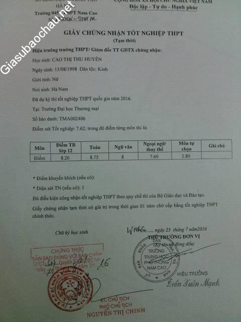 | Trường | ĐH Hà Nội |