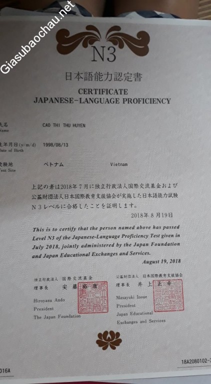 | Khoa | Ngôn ngữ Nhật Bản |