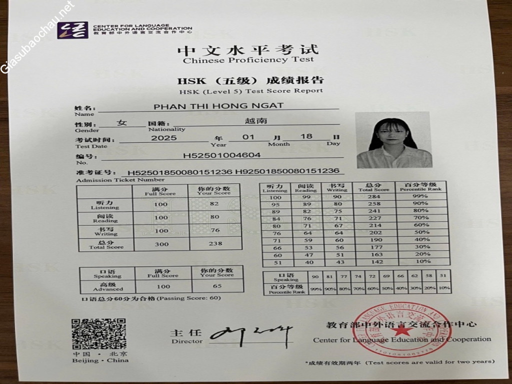 | Khoa | Ngôn ngữ Trung Quốc |