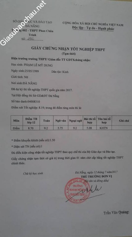 | Sống tại | H30/05 K149 Lê Đình Lý |