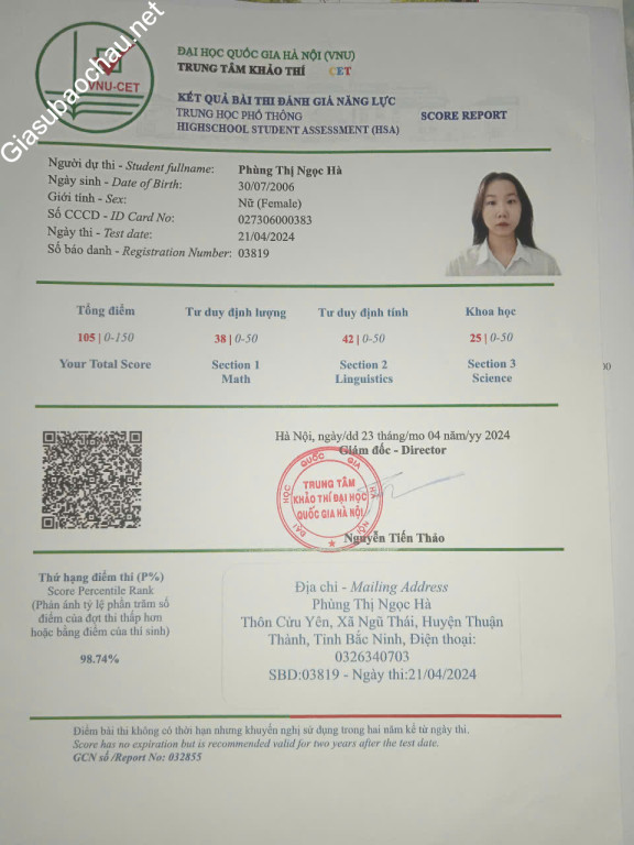 | Quê quán | Thuận Thành - Bắc Ninh |
