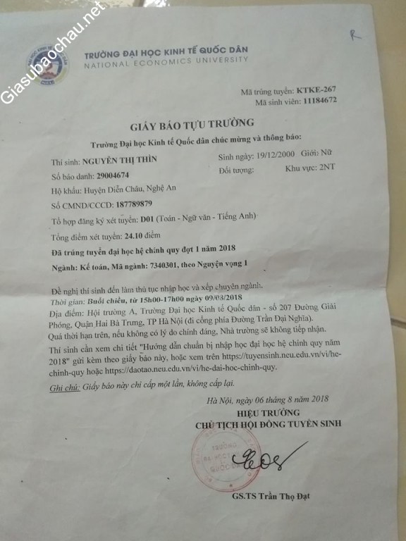 -Điểm thi đại học lần lượt của cháu là văn 9, toán 6, tiếng anh 8,6.Trước đây cháu là một học sinh mất gốc tiếng anh nhưng bắt đầu từ năm học lớp 7 cháu đã tìm thấy niềm đam mê học tiếng anh nhờ phương pháp dạy và sự tận tâm của một cô giáo dạy tiếng anh ở trường cấp 2.Ngoài niềm đam mê với tiếng anh cháu cũng yêu thích tìm hiểu về văn học.